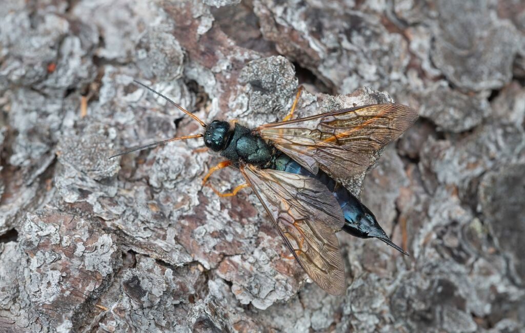 Contenção rápida é fundamental. Pesquisadores testam o uso do nematoide Deladenus siricidicola, eficaz contra S. noctilio, mas ainda não encontrado em troncos infestados. Vespas parasitas nativas, como Ibalia leucospoides, já emergiram de toras coletadas, sugerindo algum potencial de controle biológico natural.