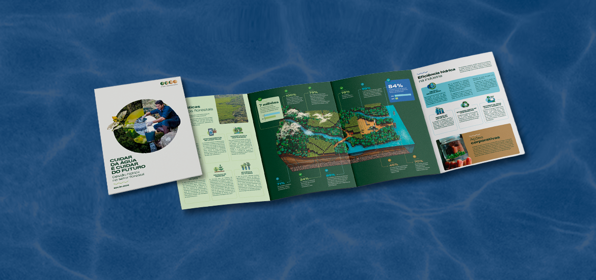 A racionalidade com os recursos hídricos começa nos viveiros e se estende pelas paisagens de cultivo e conservação. Com melhoria contínua, o volume de água necessário para produzir uma muda caiu 24% desde 2016. No campo, os 10,5 milhões de hectares de árvores plantadas não são apenas fonte de matéria-prima para produtos renováveis e biodegradáveis, mas reabilitação para pastagens degradadas, por exemplo. A conversão dessas áreas para o plantio de árvores melhora a infiltração de água no solo, evita o assoreamento em rios e lagos e ajuda na recarga do lençol freático.
